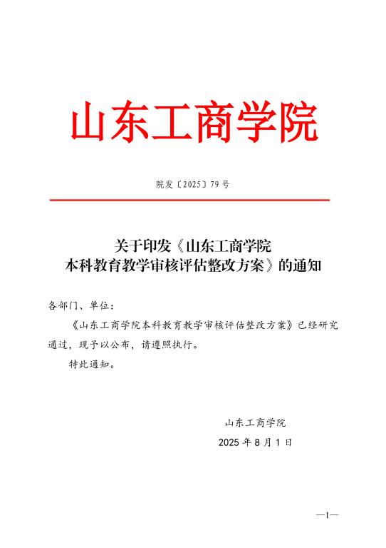 关于印发《山东工商学院本科教育教学审核评估整改方案》的通知